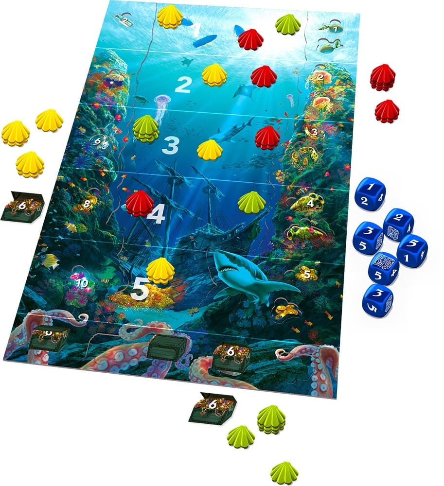 Dans INTO THE BLUE, vous incarnez une équipe de plongeurs à la recherche de mystérieux trésors enfouis sous les eaux. Mais attention, vous n’êtes pas le seul à vouloir vous emparer de ces merveilles immergées… Explorez les profondeurs et tentez de remonter les biens les plus précieux. Marquez votre présence dans les différentes zones pour espérer en prendre le contrôle et vous attribuer leurs richesses !
