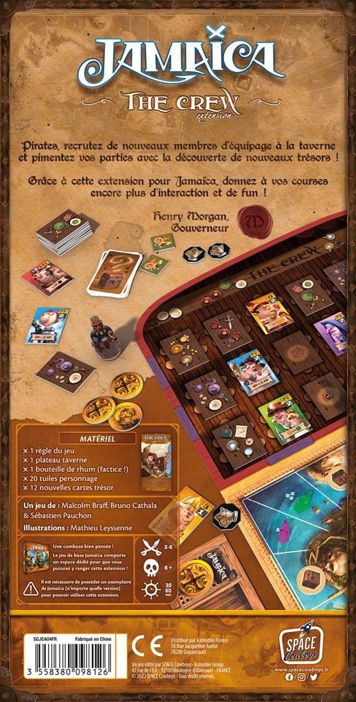Cette extension apporte une nouvelle dimension à vos parties de Jamaica. Avec de nouveaux membres d’équipage, chaque course devient une opportunité de découvrir de nouvelles stratégies et de nouvelles interactions. Chargez davantage de marchandises, attaquez vos adversaires à distance ou gérez mieux vos déplacements grâce aux pouvoirs uniques des membres d’équipage.