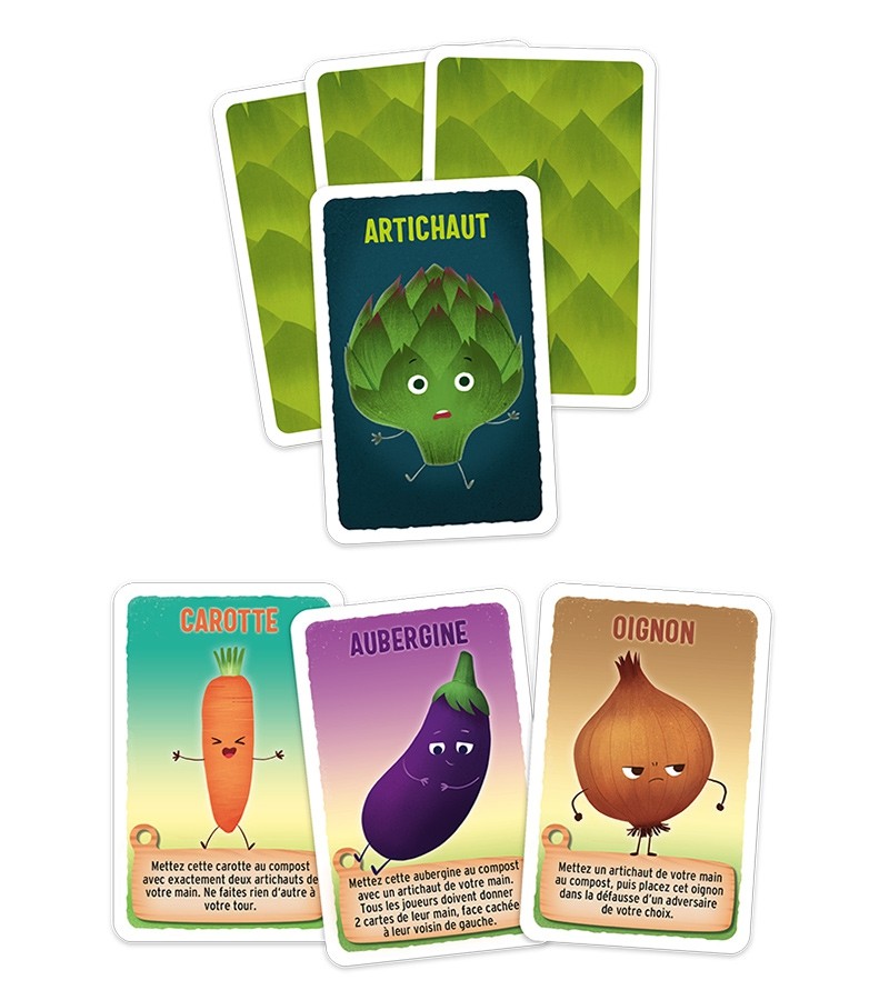 Principe du jeu Votre objectif est de vous débarrasser de vos artichauts ! Pour cela, vous devez aller chercher de nouveaux légumes à chaque tour, les intégrer à votre pioche, et utiliser leurs effets pour mettre vos artichauts au compost ! Vous gagnez la partie dès que vous parvenez à tirer une main de cartes dépourvue d’artichauts.
