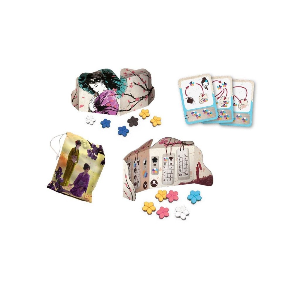 Principe du jeu : Votre but est de réaliser les bonnes collections de couleurs de fleurs afin de marquer le maximum de points de victoire. Deux façons de gagner des points : en réalisant les bonnes collections de couleurs de fleurs ou en gagnant des majorités de couleur. Dans un sac opaque se cachent des fleurs de 6 couleurs différentes. Tour à tour piochez des fleurs (maximum 8 en trois pioches). Si vous cueillez 3 fleurs identiques ou 5 fleurs de couleurs différentes, vous perdez la manche. Dans le cas contraire ajoutez vos fleurs à vos différentes collections ou cachez-les derrières votre paravent pour constituer une ou deux autres collection dans lesquelles il vous faudra être majoritaire en fin de partie. Utilisez les fleurs blanches et noires à bonne escient, réalisez les plus belles collections et marquez le maximum de points de victoire pour espérer voir votre vœu se réaliser.