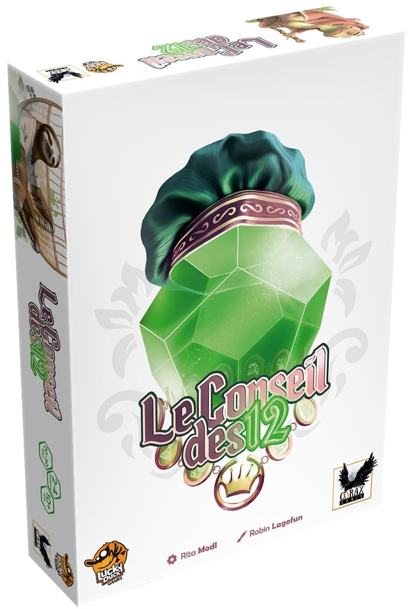 Le Conseil des 12 est la suite du célèbre jeu «Le Roi des 12». Contrairement à son homologue, c’est un jeu entièrement coopératif dont le niveau de difficulté est ajustable en fonction des joueurs autour de la table. Ici, le but est de manipuler collectivement le D12 central en fonction des exigences des cartes en main. Le Conseil des 12 est complètement autonome, mais s’appuie sur les éléments de base populaires du Roi des 12. Les différents personnages y sont joués et annulés, et les dés sont manipulés de la même façon.