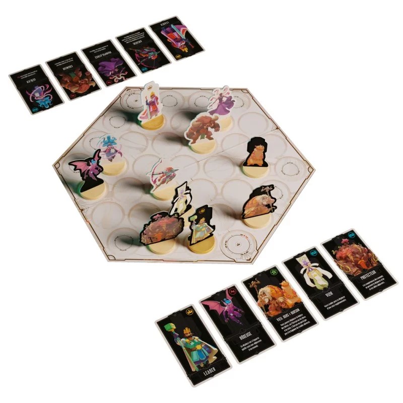 Composez une équipe de Personnages uniques afin de vaincre le Leader adverse ! Pour cela, capturez-le en amenant 2 de vos Personnages à côté de lui ou manœuvrez habilement pour qu’il se retrouve complètement encerclé ! Le tour de jeu se compose de deux phases : la phase d’Action puis la phase de Recrutement.