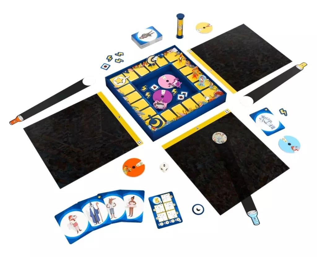 Plongez dans un monde nocturne rempli de personnages cachés dans l’ombre ! Grâce à votre lampe de poche, explorez le plateau pour retrouver les silhouettes dissimulées et ne pas vous faire rattraper par la Lune ! Un jeu familial et accessible, parfait pour développer l’observation et la rapidité des petits comme des grands.