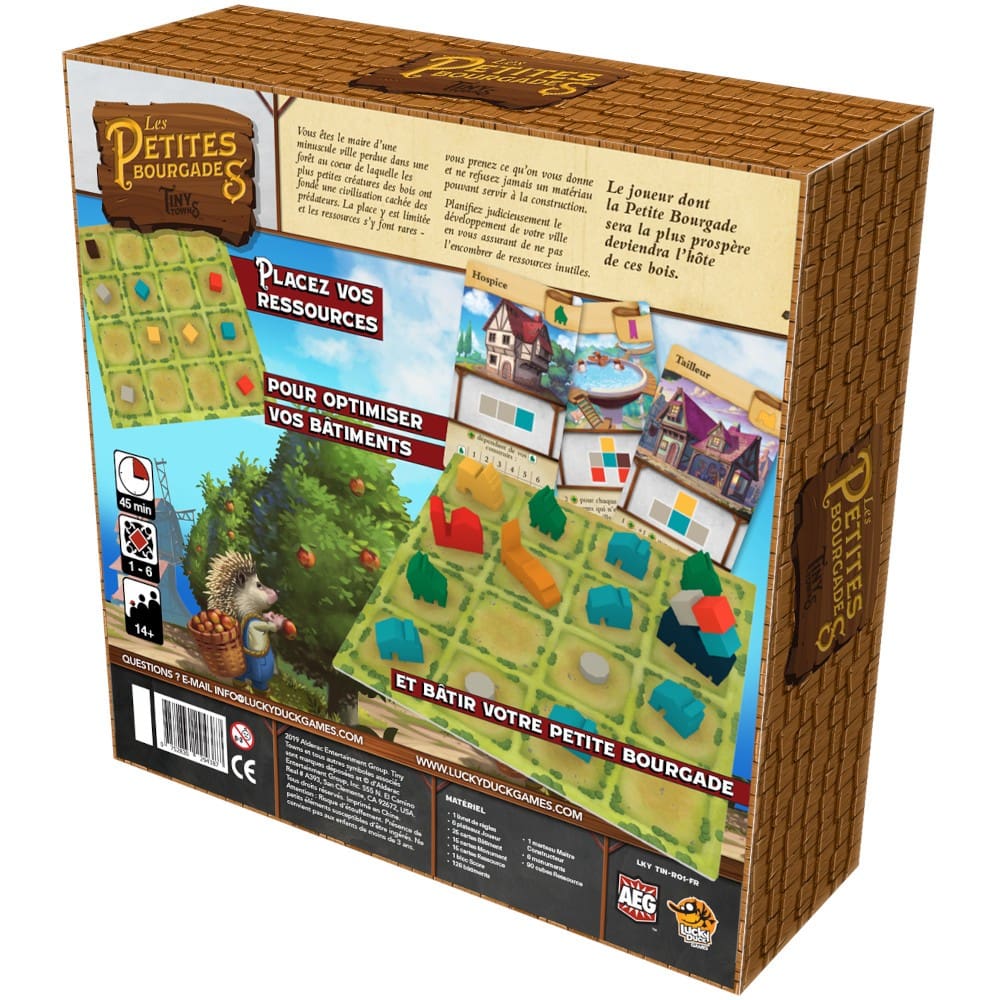 L’HISTOIRE Vous êtes le maire d’une minuscule ville perdue dans une forêt au cœur de laquelle les plus petites créatures des bois ont fondé une civilisation cachée des prédateurs. La place y est limitée et les ressources s’y font rares – vous prenez ce qu’on vous donne et ne refusez jamais un matériau pouvant servir à la construction. Planifiez judicieusement le développement de votre ville en vous assurant de ne pas l’encombrer de ressources inutiles. Le joueur dont la Petite Bourgade sera la plus prospère deviendra l’hôte de ces bois.