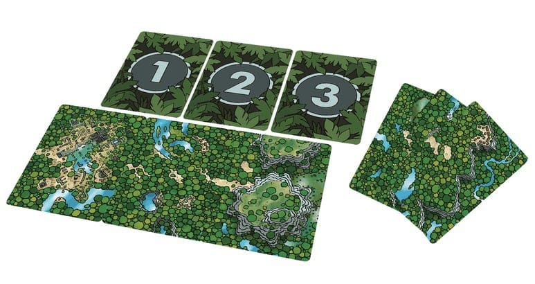Les joueurs devront naviguer à travers un labyrinthe de 7 à 9 cartes Chemin, en fonction de la difficulté choisie, pour atteindre la cité perdue. Chacun des trois membres de l’expédition possède des points de vie et une compétence unique qui peut être utilisée stratégiquement en cours de partie. De plus, tous les membres partagent un approvisionnement en munitions et en nourriture, ce qui rend chaque décision cruciale pour la survie de l’équipe.