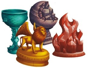 Contenu • 58 cartes • 24 tuiles • 6 pions en bois • 4 figurines Trésor • 1 Échelle graduée • 1 Marqueur de niveau