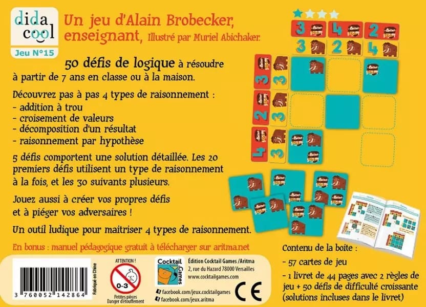 Logidingo est un jeu pédagogique malin conçu pour développer le raisonnement logique des enfants à partir de 7 ans. Adapté aussi bien à un usage scolaire qu’à la maison, il propose 50 défis progressifs à résoudre seul ou accompagné, pour stimuler l’esprit logique tout en s’amusant.