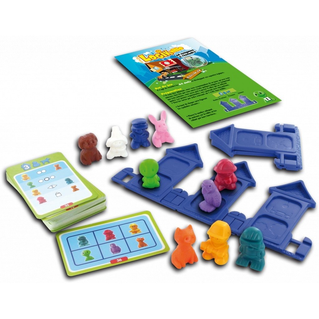 Devinez dans quelles maisons vivent plusieurs personnages et leurs animaux en vous basant sur les indices indiqués sur des cartes d’énigmes. Placez les figurines de personnages et animaux dans les maisons adéquates, puis vérifiez si vous avez visé juste en retournant la carte pour regarder la solution. Les enfants et les joueurs débutants commencent par placer leurs personnages et animaux dans 3 maisons avant de passer à 5 maisons. Apprenez à maîtriser les pictogrammes qui vous aideront à résoudre les énigmes puis devenez le roi de la logique !