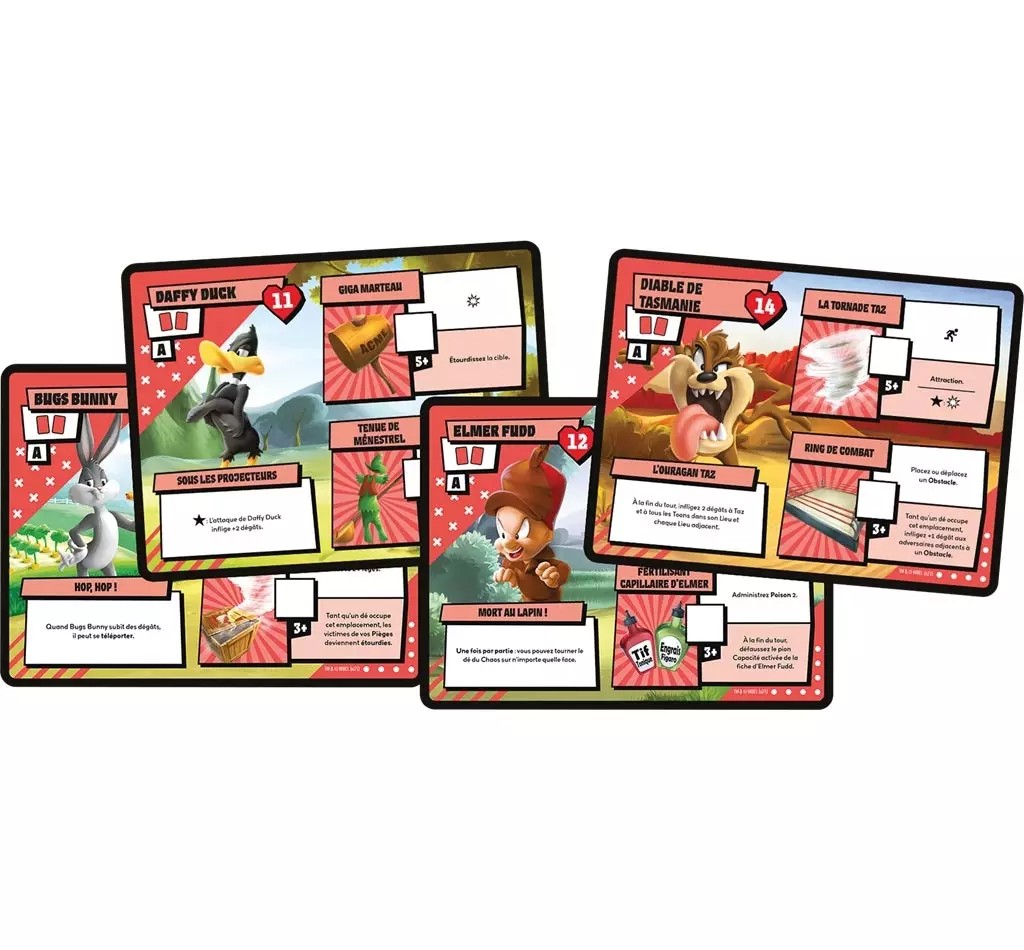 Les Looney Tunes, les personnages des dessins animés de Warner Bros sont prêts à faire ce qu’ils font de mieux en cassant tout et en se frappant les uns les autres. C’est un combat pour obtenir le plus de Points de Victoire, où une seule équipe restera debout tandis que les autres comptent les oiseaux et les étoiles flottant autour de leurs têtes. Dans Looney Tunes Mayhem, les joueurs incarnent leurs personnages préférés de Looney Tunes ( Bugs Bunny, Daffy Duck….) dans un combat en équipe. Les joueurs choisissent deux Toons pour former leur équipe. Chacun a son propre équipement unique pour vaincre ses adversaires. Lancez le dé Mayhem pour voir combien de dégâts seront occasionnés à ce tour. Le joueur qui atteint 5 PV en premier est déclaré vainqueur ! Mêlant fun et tactique, cette boite de jeu est compatible avec toutes les boites de jeu du système Mayhem de CMON. La bagarre ne fait que commencer.