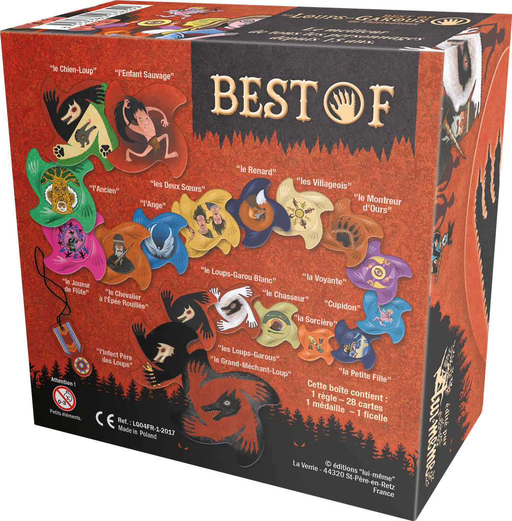Le meilleur des Loups-Garous de Thiercelieux… et de leurs proies ! Retrouvez 28 personnages qui ont marqué les centaines de milliers de parties de Loups-Garous de Thiercelieux, parmi lesquels le Grand Méchant Loup, l’Infect Père des Loups, le Loups Blanc ou encore l’Enfant Sauvage. Vous trouverez dans cette édition exceptionnelle le jeu de base et du matériel de grande qualité, au design très… Loups-garous ! Un best of pour joueurs chevronnés ou pour commencer à jouer !