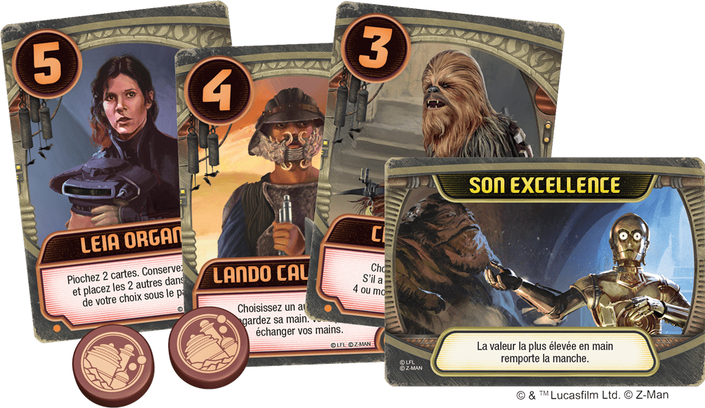 Retrouvez le meilleur de Love Letter et de Star Wars© dans un jeu de cartes et à rôles cachés rapide, intense et plein de rebondissements ! Suivez attentivement quelles cartes sont jouées, par qui, tentez de déduire qui possède quel rôle et gardez un œil sur votre affiliation… Car chaque partie a sa propre condition de victoire ! Le danger guette les héros de l’Alliance Rebelle, tandis qu’ils descendent dans les entrailles du Palais de Jabba le Hutt !