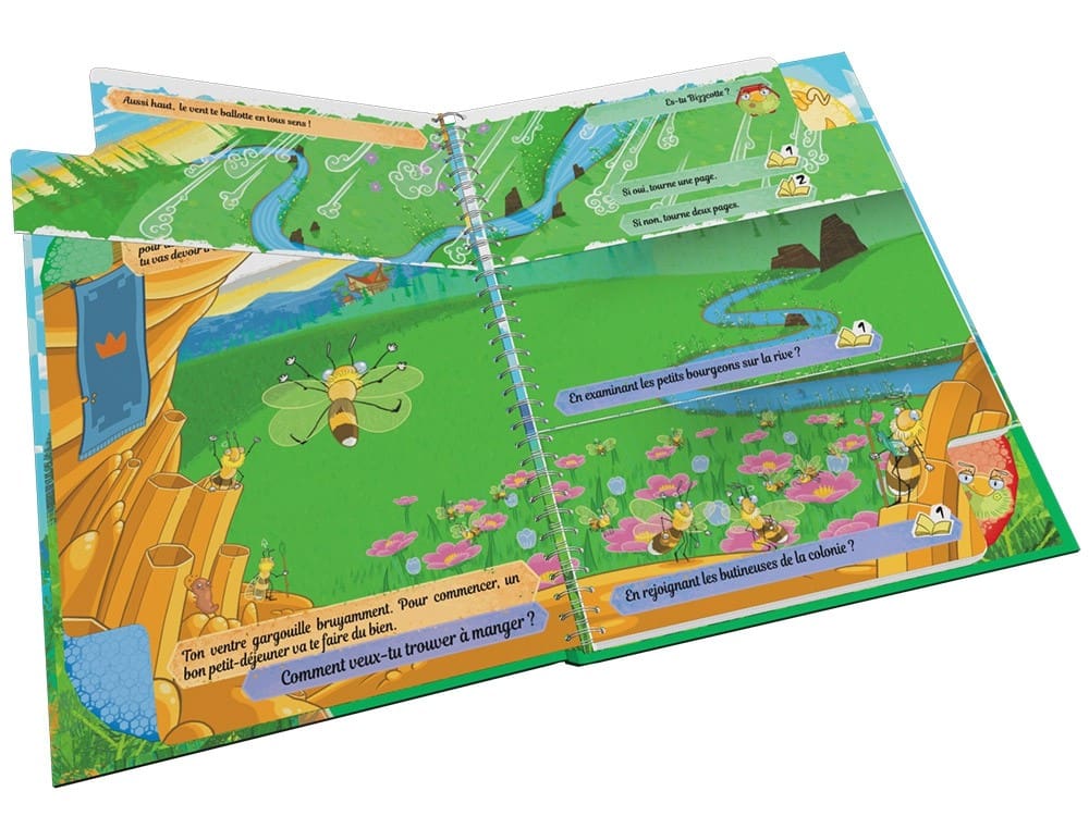 Choisis l’abeille que tu souhaites incarner et cherches tout ce qu’il te faut pour créer ta colonie, mais dans ce livre pas comme les autres, ce sont tes choix qui déterminent la suite de ton aventure. Crée ta propre histoire : à chaque page coupée en trois tu devras faire un choix.