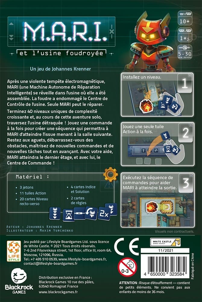 M.A.R.I doit réparer le centre de controle d’une usine foudroyée. Pour cela, vous allez devoir programmer des séquences de tuiles d’actions au travers de différents à la difficulté croissante.