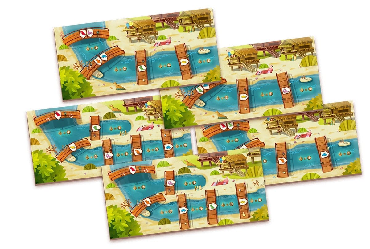 - Plateaux Individuels Supplémentaires : 5 plateaux individuels s’ajoutent à ceux du jeu de base, à disposer au-dessus de vos enclos terrestres. Ces nouveaux plateaux permettent à vos dinosaures volants de construire leurs nids en hauteur et d’accéder à des bonus cachés.