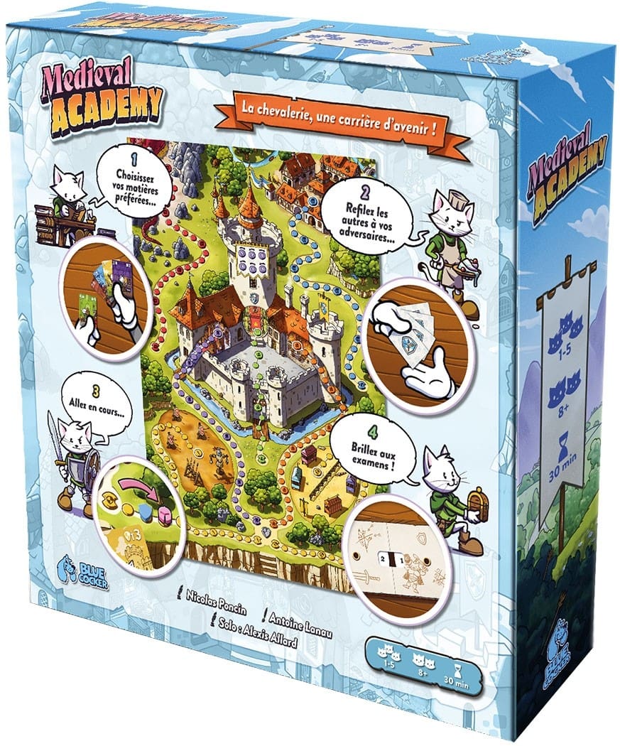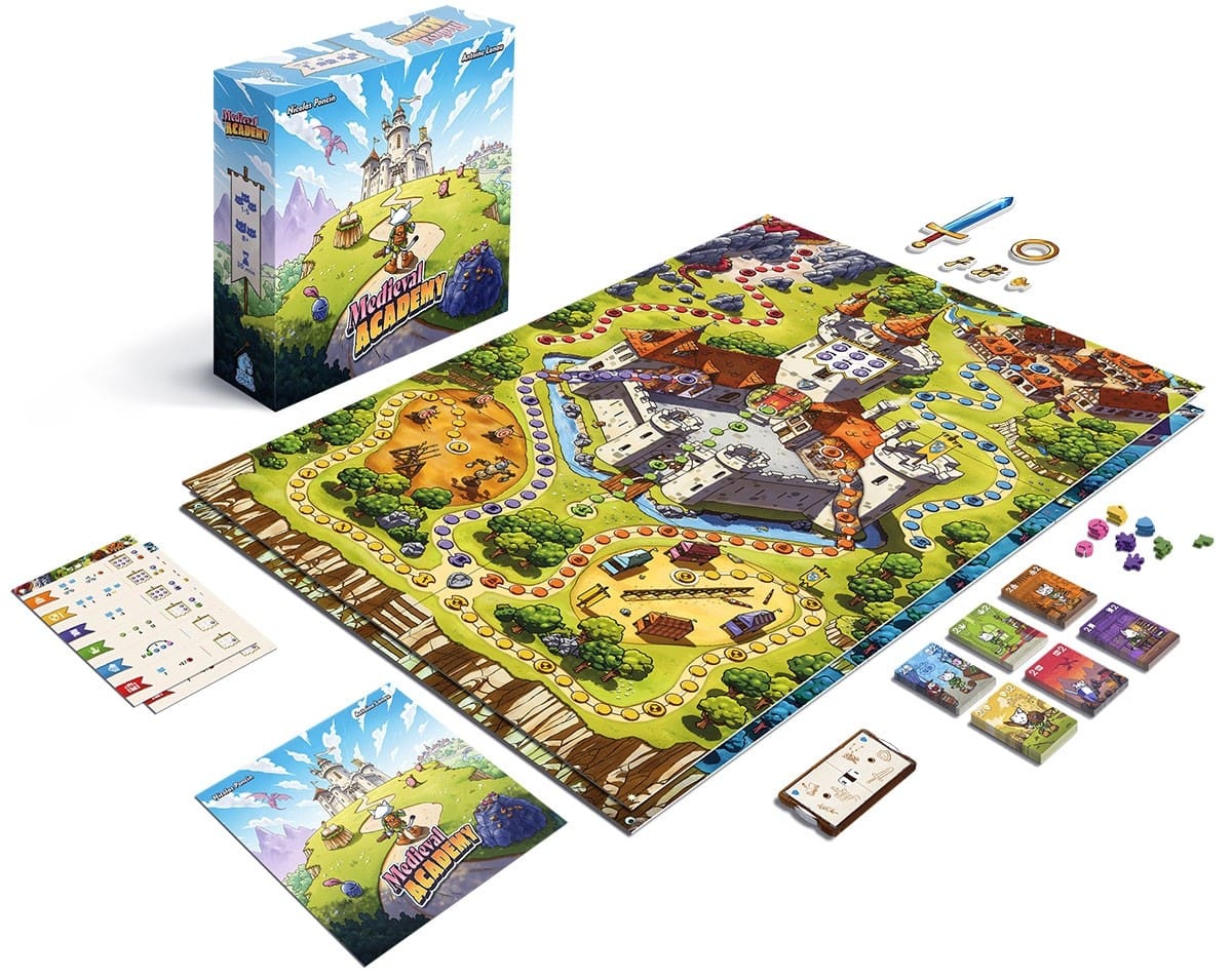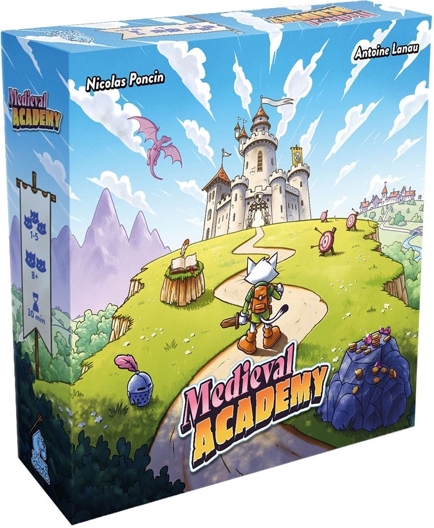 Bienvenue à la Medieval Academy, où les futurs chevaliers s’engagent dans des joutes, des tournois, des quêtes et des études pour devenir l’élève le plus brillant. Avec des mécaniques de cartes et de placement, chaque joueur aspire à être adoubé par le Roi Arthur à la fin du semestre.