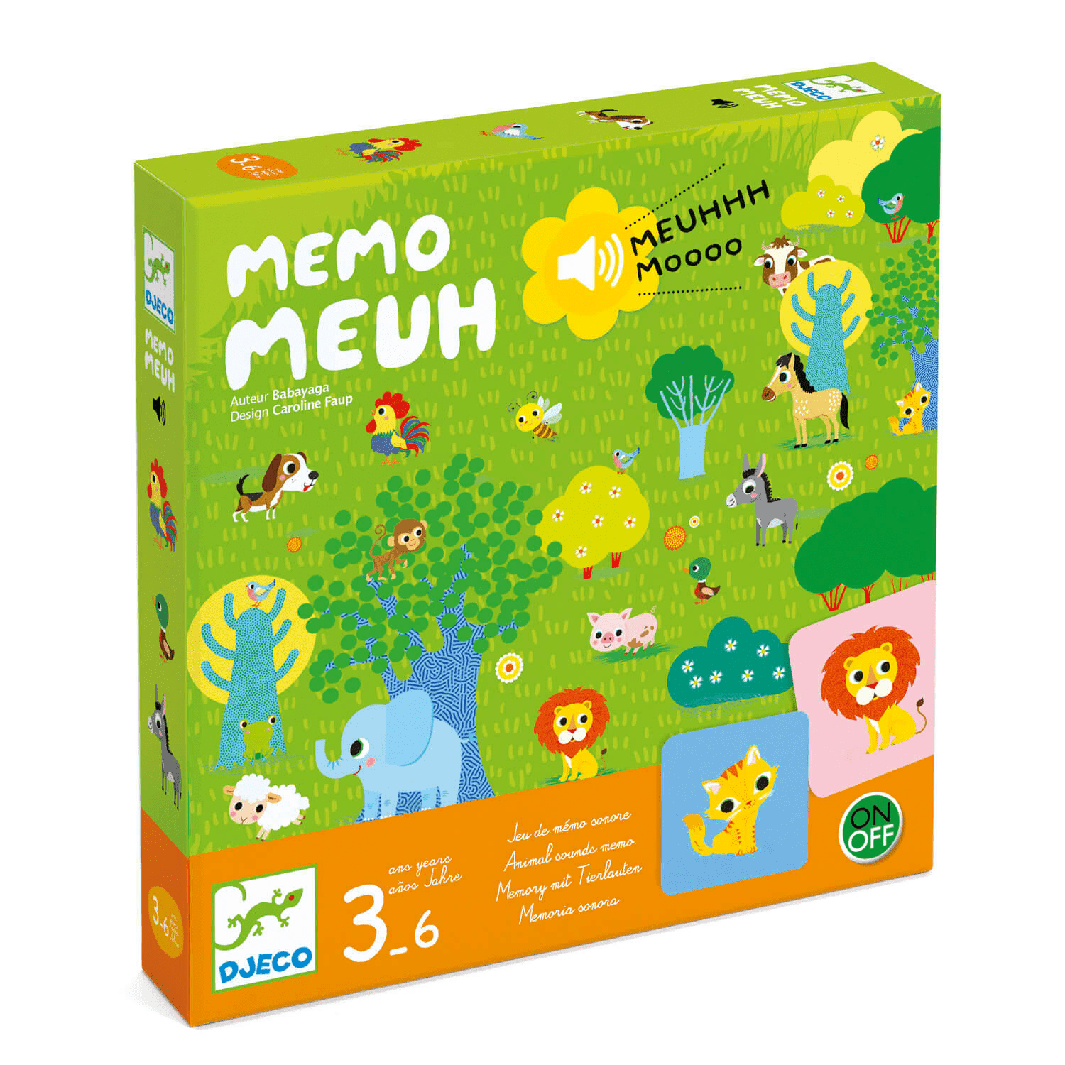 Découvrez Memo meuh de Djeco, un jeu de mémoire auditif pour les enfants de 3 à 6 ans. Un mémo rigolo où il faut appuyer sur une pastille jaune, tendre l’oreille et reconnaître le cri d’un animal, puis le retrouver parmi les cartes. Un classique revisité pour faire preuve de mémoire et d’écoute. Un jeu qui stimule la mémoire de l’enfant tout en l’entraînant à reconnaître le cri des animaux. Une pastille permet de mélanger les sons avant chaque nouvelle partie.
