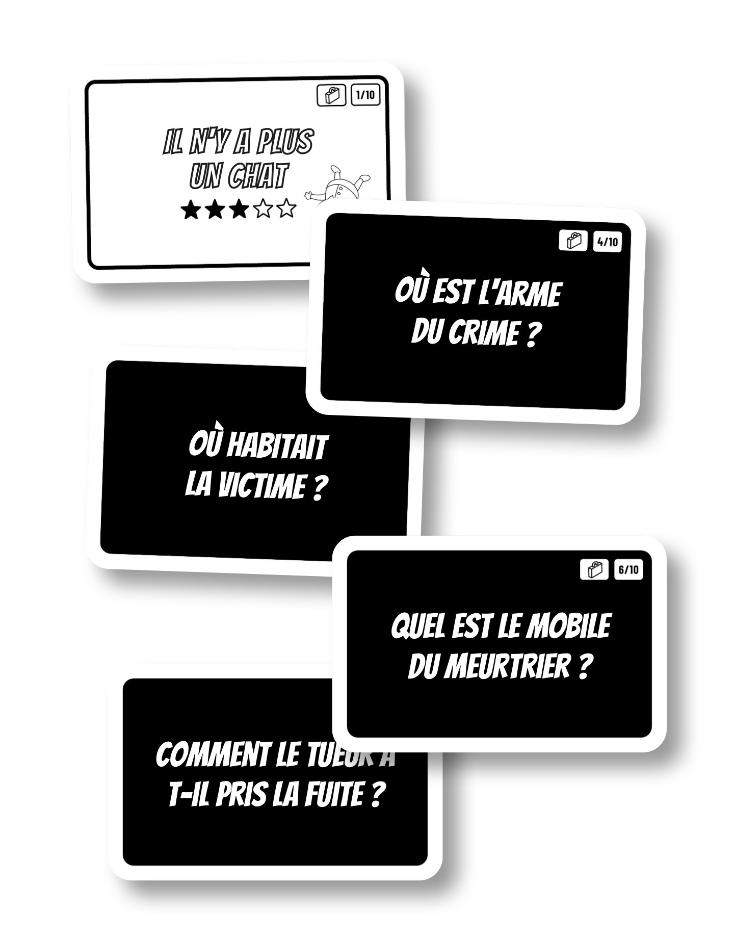 Les détectives en herbe choisissent une enquête et découvrent la première carte, qui dévoile les détails de l’affaire à résoudre. Ensuite, prenez la carte suivante et répondez à la question posée. Pour vérifier votre réponse, retournez simplement la carte. La réponse se trouve au dos, prête à éclairer ou à confirmer vos soupçons. Continuez à répondre aux questions, et à mesure que vous avancez, les mystères de Crime City se dévoileront devant vous.