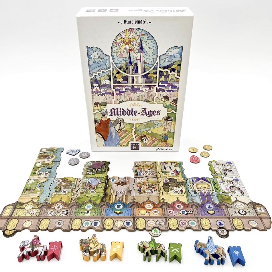 Middle Ages est un jeu de société captivant qui mélange pose de tuiles et collection/combinaison, conçu pour 2 à 5 joueurs. Incarnez un Seigneur médiéval et développez votre fief pour en faire le plus prospère du royaume. Que vous soyez un bâtisseur de remparts, un développeur agricole, un pieux constructeur d’églises ou un recruteur militaire, vos choix détermineront votre succès.