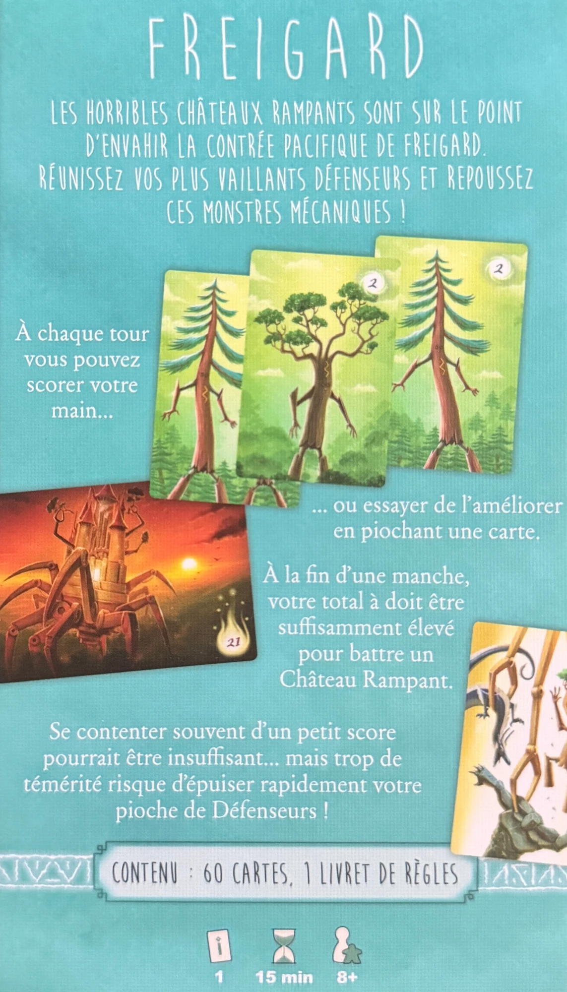 Dans Freigard, vous incarnez le dernier défenseur d’une contrée paisible menacée par de mystérieux châteaux mécaniques en marche. Ce jeu de cartes solo propose un défi tactique accessible, intense et rapide, imaginé par le célèbre auteur Reiner Knizia.