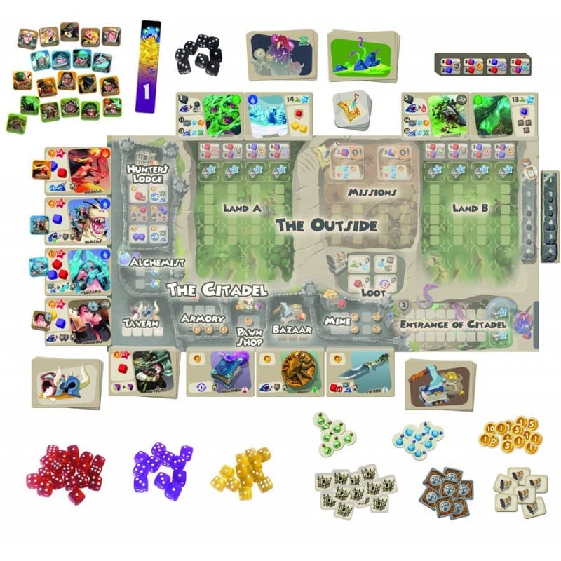 Vos mercenaires vous fournissent des dés, ceux-ci seront utilisés pour effectuer des actions, via un mécanisme de ìplacement d’ouvriersî. Dans la Citadelle, vos dés vous permettront d’améliorer votre clan, d’acquérir de l’équipement, des boucliers, des potions, d’engager des mercenaires et plus encore. Le timing de vos actions et le type de dés utilisé auront un effet aussi bien sur vous qu’aux autres joueurs.