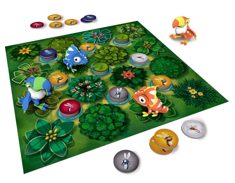 - Caméléon: Peut manger un Moustique sur n’importe quelle mare adjacente, puis se déplace sur une case vide orthogonale tout en appliquant l’effet du moustique mangé.