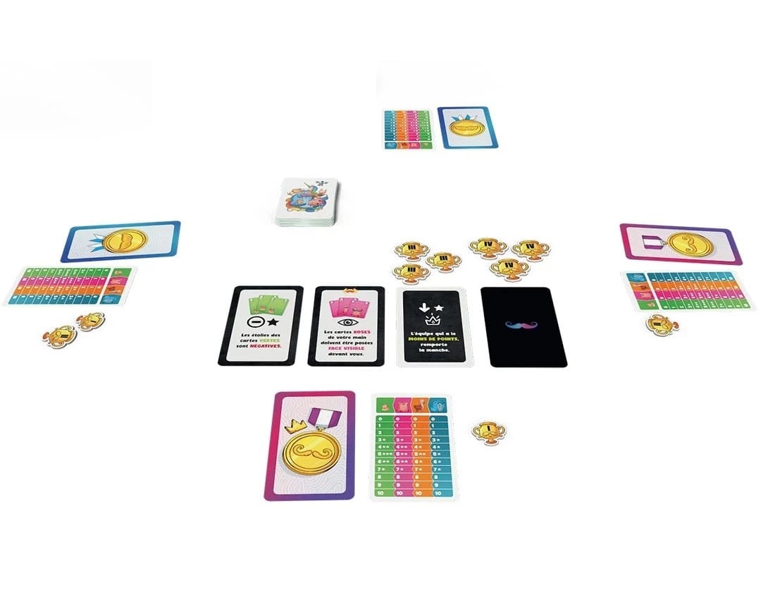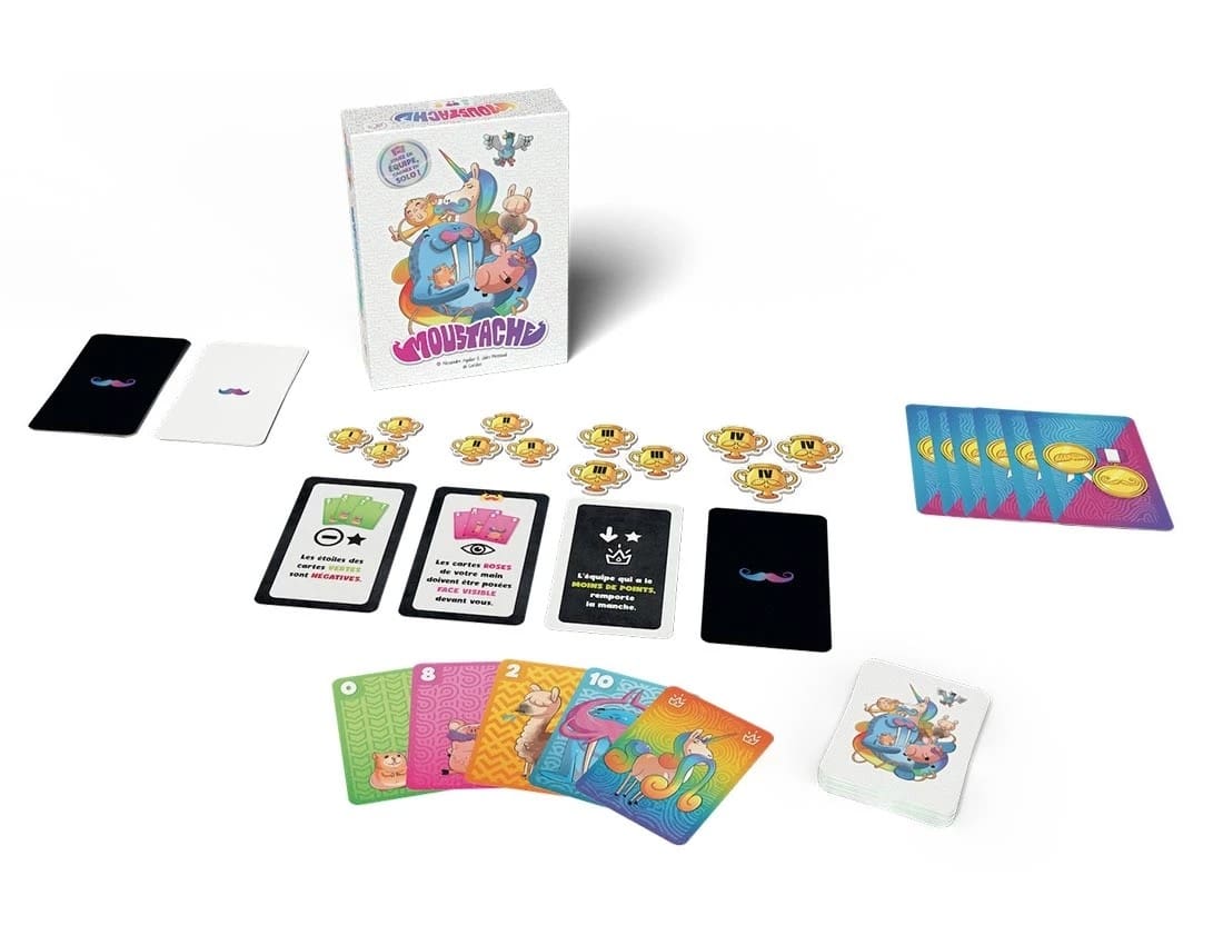 Un jeu de plis complètement déjanté où les équipes changent, les règles évoluent et rien ne se passe jamais comme prévu ! Dans le jeu Moustache, à chaque manche, les équipes sont redéfinies aléatoirement et une nouvelle règle vient chambouler la partie : hiérarchie des couleurs inversée, jokers délirants, effets de cartes… Rien n’est jamais figé ! Dans Moustache, oubliez tout ce que vous savez sur les jeux de plis classiques. À chaque manche, les équipes sont redéfinies aléatoirement, et une nouvelle règle spéciale vient tout bouleverser : Hiérarchie des couleurs inversée Jokers farfelus Effets de cartes imprévisibles Et bien d’autres surprises !