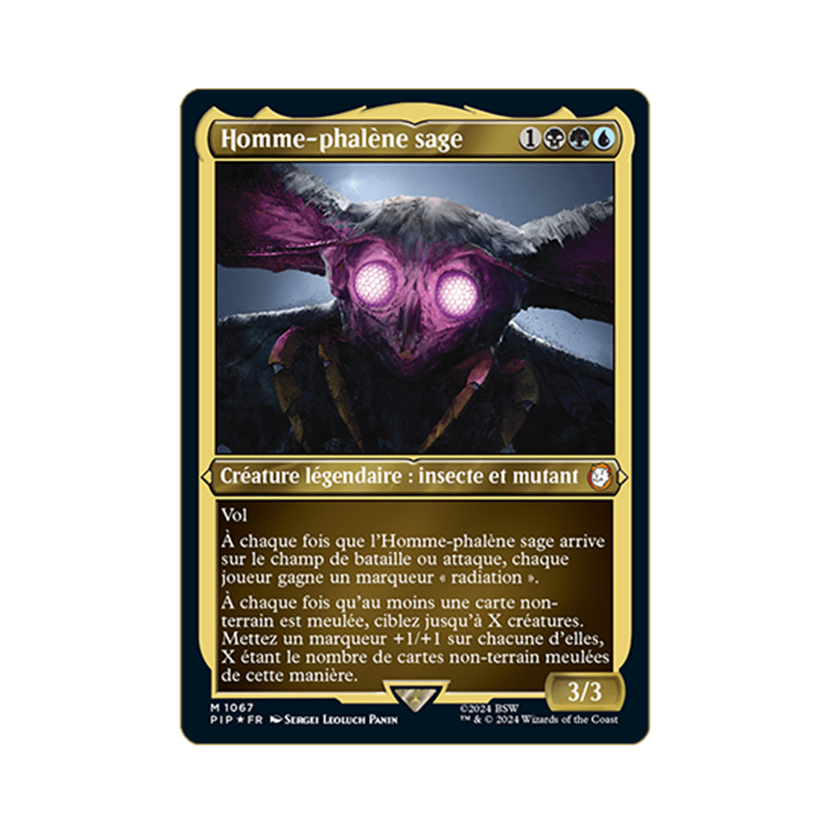 Menace Mutante est un deck Noir / Vert / Bleu avec pour Commandant L’Homme-phalène sage issu de Fallout 76. Il met en avant les dangereuses créatures mutantes de l’univers de Fallout. Exposez tous les joueurs à un nouveau type de marqueur : les radiations. Ils infligent des dégâts à chaque joueur qui en possède en plus de les meuler !