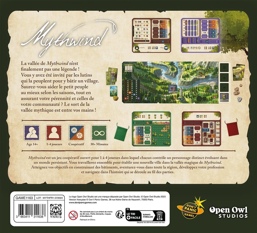 Narration immersive : Plongez dans un univers enchanteur avec des éléments fantastiques et une exploration riche. Rejouabilité : Chaque partie offre des possibilités variées grâce à des événements aléatoires et des choix stratégiques. Coopération stratégique : Planifiez ensemble pour maximiser les chances de succès de votre communauté en fonction des saisons et des ressources disponibles. Sauvegarde et Continuité : Utilisation d’inserts pour sauvegarder facilement votre progression entre les sessions de jeu, permettant une reprise fluide et rapide. Contenu du Jeu : Mythwind comprend des cartes représentant les bâtiments, les ressources, les événements et les tribus de lutins. Les règles détaillées guident les joueurs à travers chaque phase de la journée, où les actions spécifiques des personnages influencent le développement du village et le succès collectif.