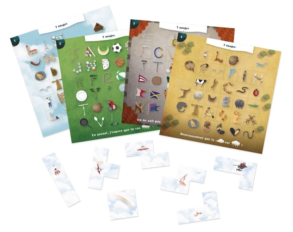 Les joueurs doivent poser des nuages sur des dessins pour les regrouper en catégories. À la fin, les dessins encore visibles forment des lettres qui révèlent deux mots mystères. Utilisez votre intuition et vos compétences de déduction pour organiser les éléments et découvrir les mots cachés.
