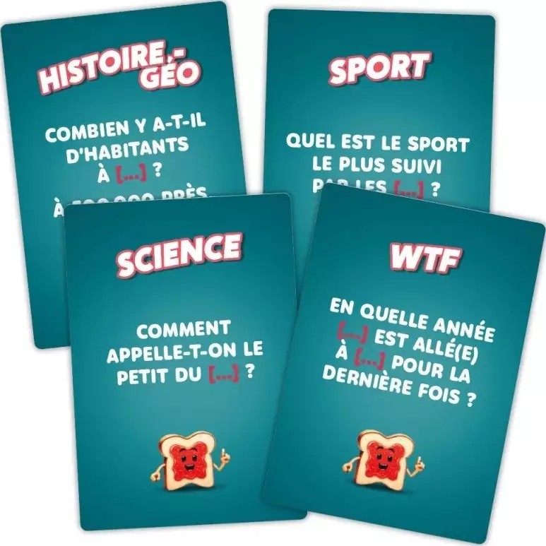 Complétez une carte-question avec un élément manquant pour en faire une question ni trop simple, ni trop complexe. Plus votre question est bien dosée, plus vous marquez de points ! ? 2. Vos adversaires doivent répondre