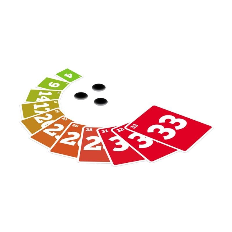 À votre tour de jeu, faites le choix d’accepter une carte ou de dire « Non merci ! » en posant l’un de vos jetons sur la carte refusée. C’est ensuite au joueur suivant de prendre une décision et éventuellement de récupérer votre jeton. Chaque carte acceptée fait perdre des points. Mais si vous reconstituez les suites, vous ne perdez que la valeur de la plus petite carte de la suite. Gérez au mieux vos jetons, car, de toute façon, il vous faudra accepter des cartes.