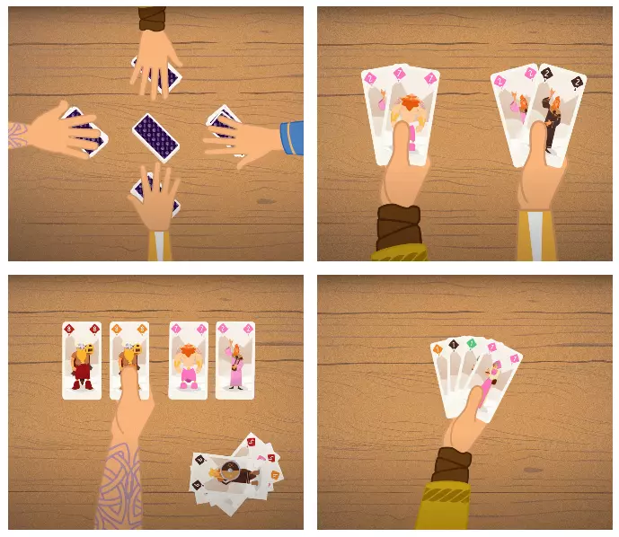 Le jeu se déroule en plusieurs manches, chacune divisée en tours dynamiques. À chaque tour, vous devez prendre des décisions stratégiques : poser des cartes pour composer votre main ou passer pour anticiper les mouvements de vos adversaires. Cette mécanique simple mais efficace garantit une expérience de jeu rapide et captivante.