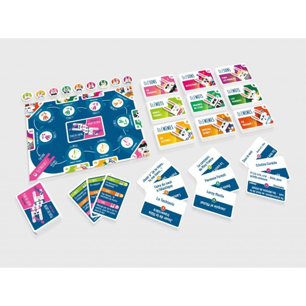 Hello les lapins ! Découvrez Olémains, le jeu drôle et bienveillant pour jouer en famille ou entre amis. 1 minute pour deviner le plus de mots possible, 9 thèmes sympathiques et déjantés, et des gages pour corser les épreuves ! Mets une carte sur ton front, et les membres de ton équipe te font deviner le mot inscrit. Dès que le mot est trouvé tu en prends une autre. Vite, tu as 1 minute pour trouver le plus de mots possibles. Puis aux suivants, c’est l’autre équipe qui joue sur le même thème !