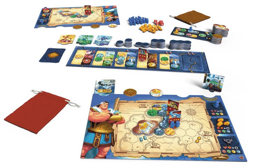 Construisez des Temples, forgez des médaillons d’Orichalque et attirez l’attention des Titans pour obtenir 5 points de victoire en premier, et remporter la partie ! Il vous faudra explorer l’île, produire des ressources, développer votre camp de base et affronter les créatures qui peuplent l’île. Orichalque est une course. Pour l’emporter vous devez pacifier votre île et obtenir 5 points de victoire avant vos adversaires. 3 options pour cela : attirer l’attention des Titans, ériger des Temples et forger des médaillons d’Orichalque. À votre tour, vous choisissez une des cartes Action disponibles, déterminante pour la suite. Elle vous permet d’abord de récupérer une tuile Terrain, à poser sur votre plateau pour symboliser l’exploration de l’île. Son positionnement permet de préparer vos futurs constructions mais aussi d’attirer l’attention des Titans. Puis vous effectuez l’Action de la carte choisie. Vous pourrez capturer les Créatures peuplant votre île. Recruter des Hoplites sera indispensable pour combattre. Produire de l’Orichalque nécessaire si vous voulez forger des médaillons. Enfin, Construire vous ouvrira la porte de nouvelles stratégies grâce à de puissants Bâtiments. Contenu 4 plateaux Île 1 plateau Construction 1 plateau Actions 12 cartes Action 4 tuiles Titan 65 tuiles Terrain 4 tuiles Métropole, 17 jetons Victoire 17 tuiles Temple 20 pions Créature et 1 sac à Créatures 26 jetons Bâtiment et 1 sac à Bâtiment 4 dés de combat 30 pions Hoplite 30 pépites d’Orichalque 1 pion Initiative 1 livret de règles