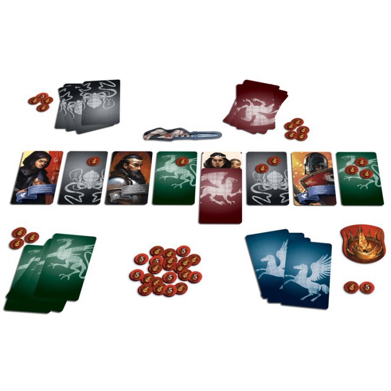 Vous incarnez le chef d’une de ces familles. Jouez vos cartes face cachée pour préparer votre plan machiavélique, protégez vos intérêts ou mettez en place une cascade d’actions, révélez vos machinations au bon moment et accumulez assez d’influence pour accéder au trône !