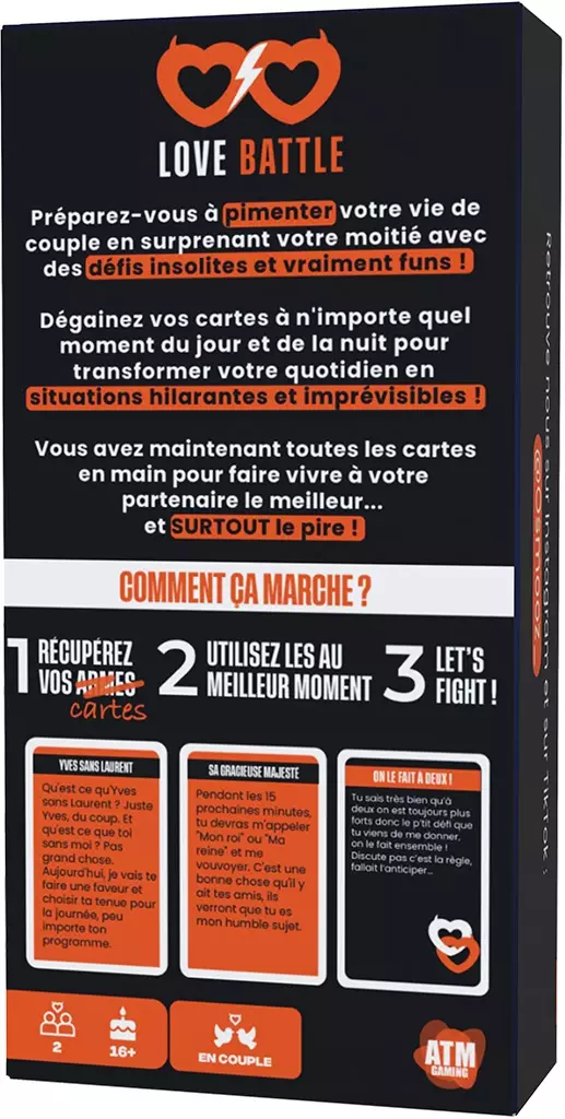 Vous pouvez dès à présent utiliser vos cartes comme bon vous semble. Moins votre partenaire s’y attend, mieux c’est… Calculez le meilleur moment, attendez l’instant propice et boooom !