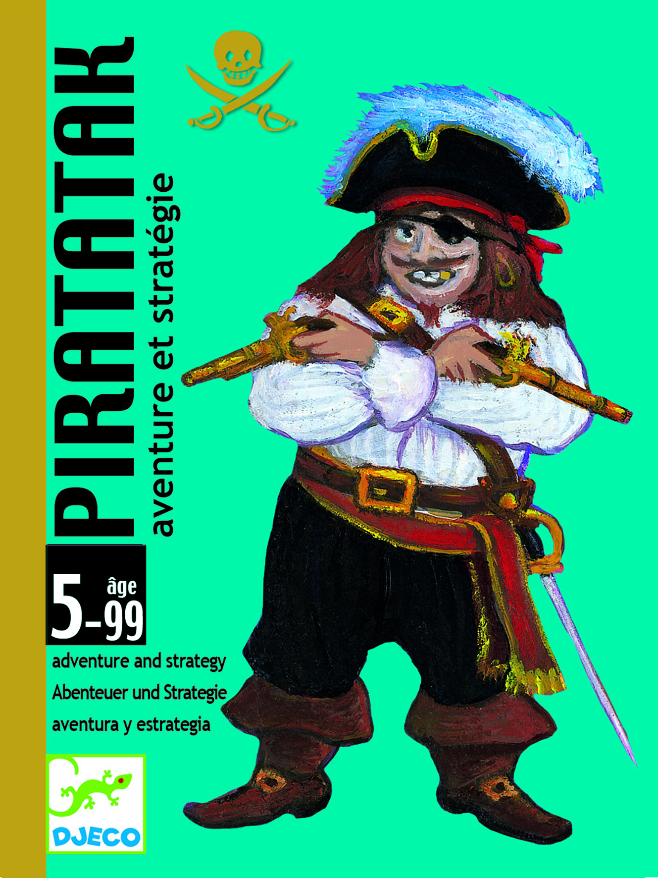 Découvrez Piratatak de Djeco, un jeu de stop ou encore sur le thème des pirates, un jeu de cartes pour les enfants à partir de 5 ans. Piratatak est un jeu dans lequel il faut savoir prendre des risques… mais pas trop! Aventureux ou prudent, à chacun sa stratégie pour construire son bateau avant que les pirates ne jettent un mauvais sort! Le but du jeu est d’être le premier joueur à construire son bateau en rassemblant les 6 cartes « bateau » d’une même couleur ! Attention, les pirates attaquent et pour les contrer, il faudra se munir d’une carte « canon » ou bien se séparer de 3 de ses cartes ou de pièces d’or… Audace, réflexion et stratégie seront nécessaires pour déjouer les malices de ce jeu! Des cartes colorées et joliment illustrées qui plairont aux grands comme aux petits. Une boîte de jeu compacte, un jeu de voyage à emporter partout.