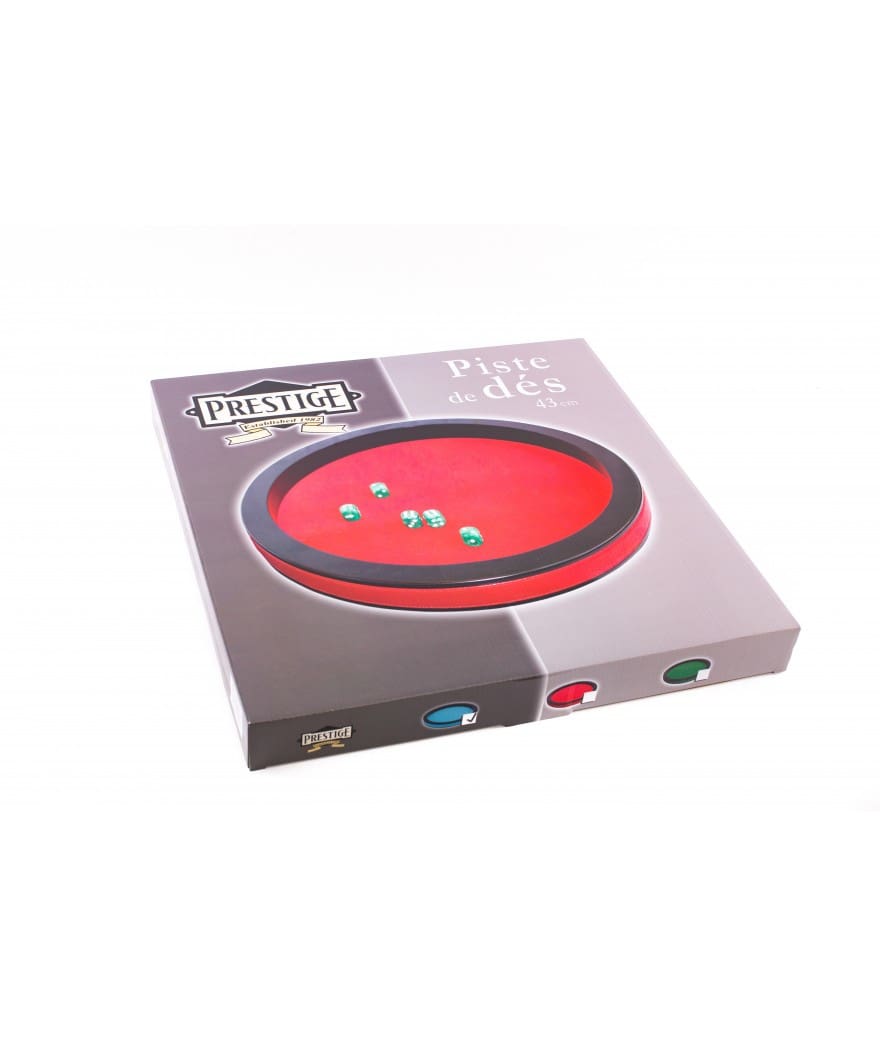 La Piste de Dés Prestige 43 cm est le compagnon parfait pour vos jeux de dés préférés, qu’il s’agisse du classique 4-21 ou du populaire Yam’s. Avec ses dimensions généreuses de 43 cm, cette piste offre amplement d’espace pour rouler les dés avec style et précision.