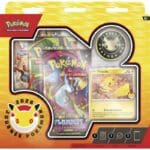 Ce coffret contient une carte promo brillante de Pikachu spécialement éditée avec le logo du 30ᵉ anniversaire, accompagnée d’une pièce métallique commémorative au design unique. Trois boosters issus de différentes extensions du JCC Pokémon complètent l’ensemble, offrant aux joueurs et collectionneurs de nouvelles cartes à ajouter à leur collection.