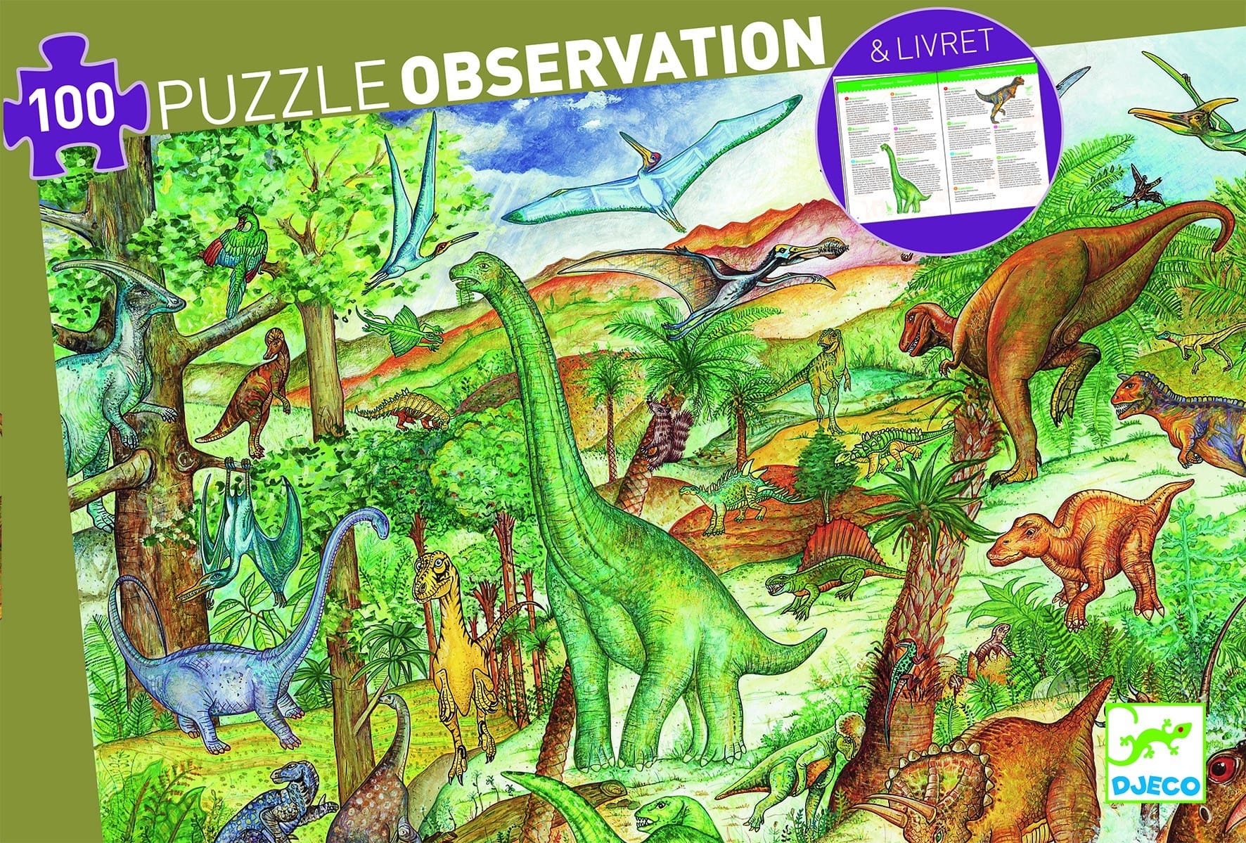 Djeco vous présente son puzzle d’observation dinosaures de 100 pièces avec livret pour les enfants à partir de 5 ans, une activité où votre enfant va créer son puzzle et feuilleter le livret pour retrouver un à un les dinosaures sur le puzzle. Un puzzle de 100 pièces, un poster et un livret éducatif décrivant les caractéristiques de chaque dinosaure et leur mode de vie. Votre enfant pourra également accrocher le poster du puzzle au mur de sa chambre. Un puzzle de qualité à faire et à refaire à volonté.