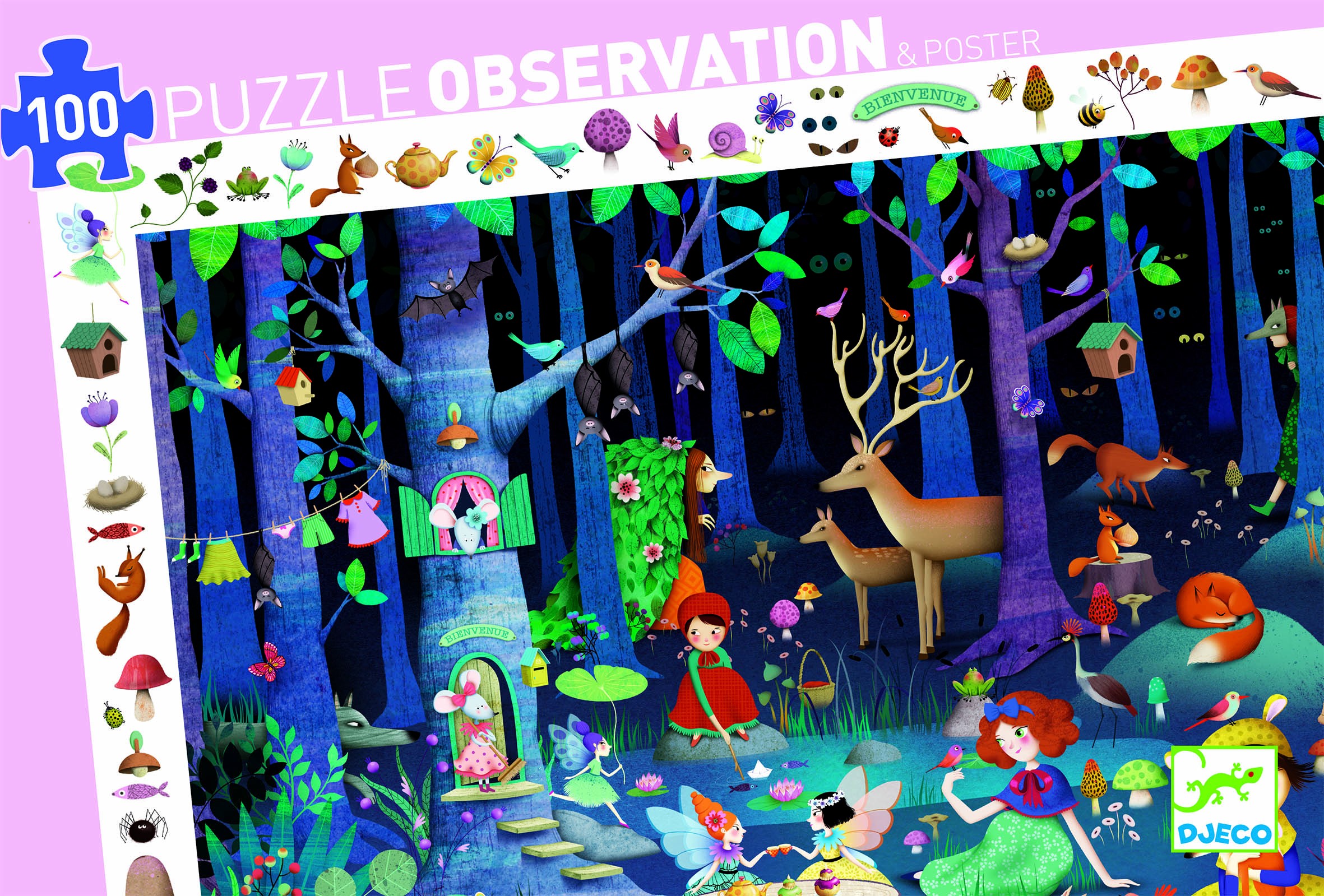 Découvrez le puzzle d’observation La forêt enchantée de Djeco, un magnifique puzzle de 100 pièces pour les enfants à partir de 5 ans, un puzzle riche en détails et en surprises, qui vous plonge dans une forêt enchantée avec des personnages et des animaux féeriques. Votre enfant va créer son puzzle, puis il s’amusera à retrouver dans l’image les éléments de la frise. Il pourra également accrocher le poster du puzzle au mur de sa chambre. Un puzzle de qualité à faire et à refaire à volonté.