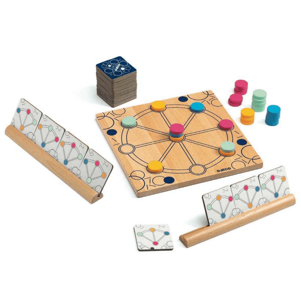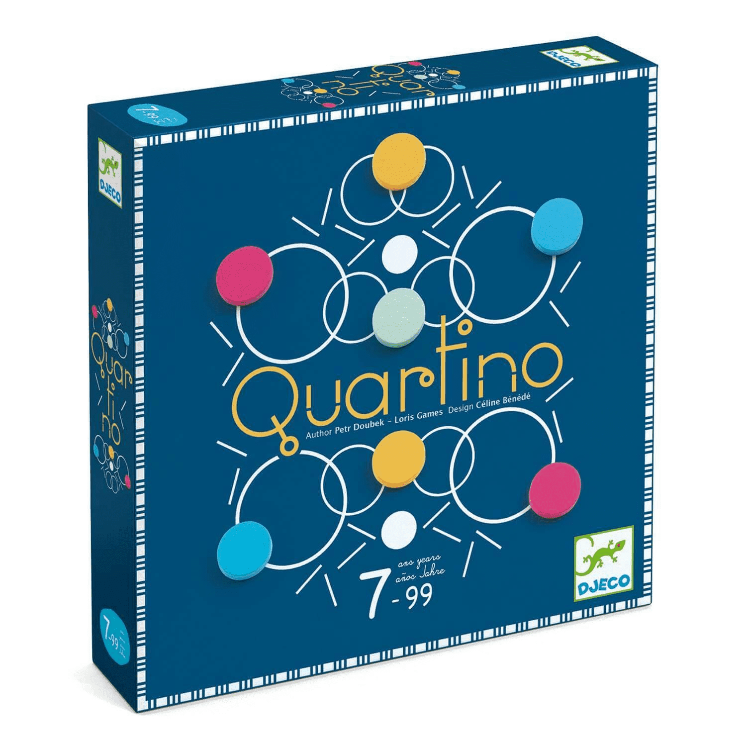 Découvrez le jeu Quartino de Djeco, un jeu de tactique et de stratégie pour les enfants à partir de 7 ans. Un jeu de plateau où vous devrez reproduire les combinaisons de couleurs de ses cartes sur le plateau alors que tous les joueurs utilisent les mêmes pièces. Les actions des autres joueurs pourront être bénéfiques ou désastreuses pour sa propre stratégie. Chaque joueur reçoit 4 cartes indiquant des combinaisons de couleurs. À son tour de jeu, chacun doit tenter de reproduire ses combinaisons sur le plateau en posant des jetons de couleur un à un. Dès qu’un joueur réalise une des combinaisons sur le plateau, il annonce « Quartino! » et les autres joueurs vérifient. Si c’est bon, il jette alors sa carte correspondant à cette combinaison et peut rejouer. Le premier joueur à réaliser ses 4 combinaisons remporte la partie.