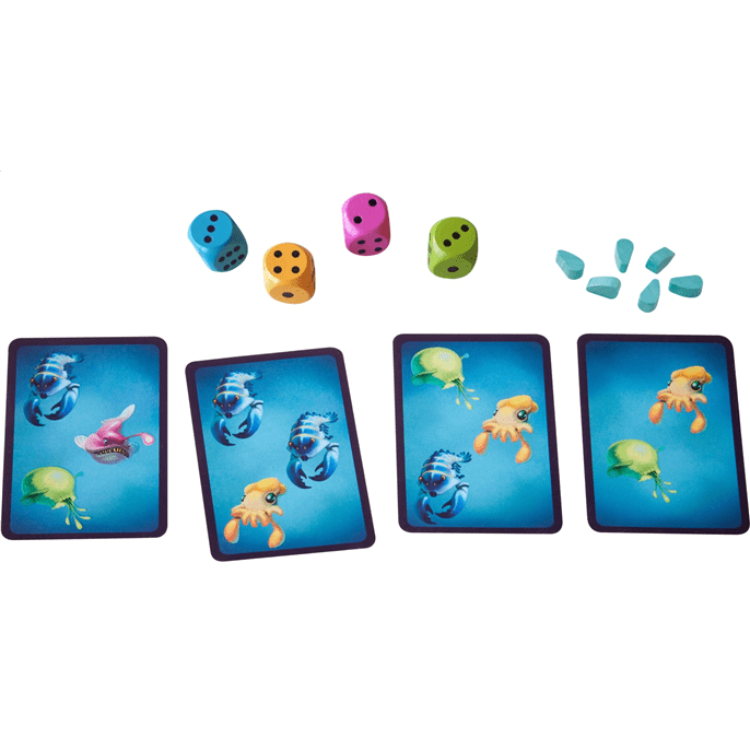 Les cartes magnifiquement illustrées arborent des couleurs éclatantes et un effet brillant, ajoutant une dimension visuelle captivante à l’expérience. Les joueurs devront faire preuve de stratégie pour capturer les créatures sous-marines tout en évitant les gouttes d’eau qui s’accumulent en cas de mauvais choix.