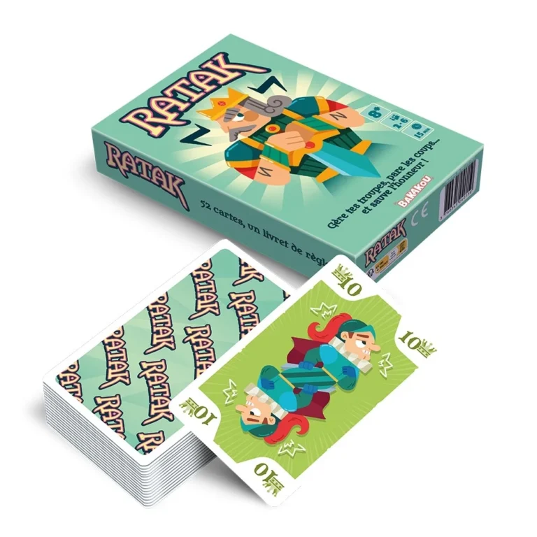 Dans le jeu Ratak, les joueurs s’affrontent dans des duels de cartes explosifs pour sauver ce qu’il reste de leur honneur. Votre objectif ? Vous débarrasser de toutes vos cartes avant vos adversaires… sous peine de devenir le « Ratak », le chevalier déchu.