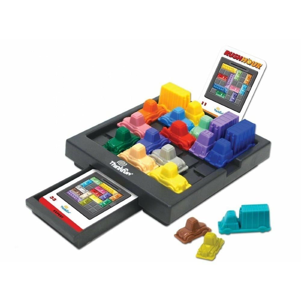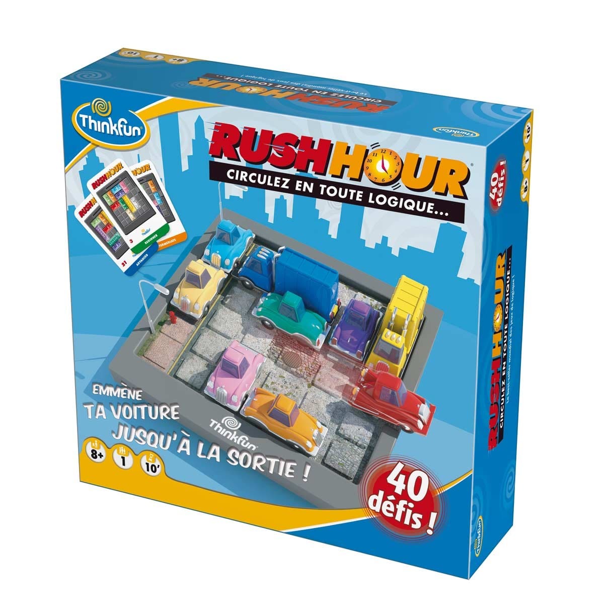 Rush Hour est le champion des jeux de blocs à déplacer ! Faites glisser la voiture rouge vers le bord du plateau de jeu pour la sortir des embouteillages. Avec 40 défis et 4 niveaux de difficulté, il est encore plus amusant à tout âge! (Dès 8 ans)