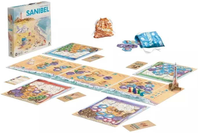 Dans le jeu Sanibel, partez pour une promenade sur une plage ensoleillée de Floride. Les joueurs incarnent des collectionneurs passionnés arpentant le littoral pour récupérer plein de coquillages colorés. Votre objectif : constituer les plus belles séries et optimiser l’organisation de vos trouvailles dans votre sac, pour engranger un maximum de points de victoire.