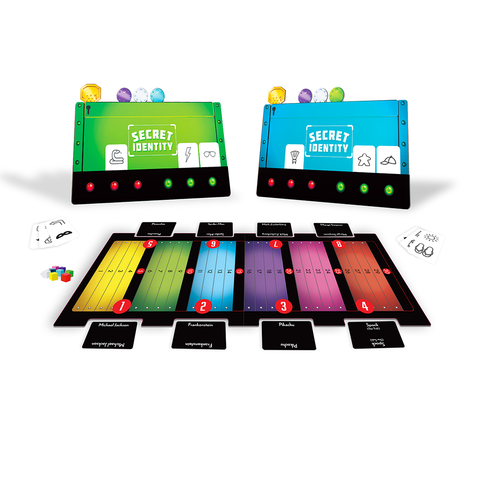 Dans Secret Identity, vous vous verrez attribuer une clé Mystère désignant une carte Personnage parmi les 8 disposées au centre de la table. À l’aide de vos cartes Picto, vous devrez faire deviner votre carte Personnage aux autres joueurs, tout en essayant de deviner la leur, pour gagner un maximum de points de victoire. À chaque manche, de nouveaux personnages seront tirées, mais vos cartes Picto ne seront pas remplacées ! À vous de faire les bons choix et de mesurer les risques… À la fin de la 4e manche, le joueur avec le plus de points de victoire remporte la partie !
