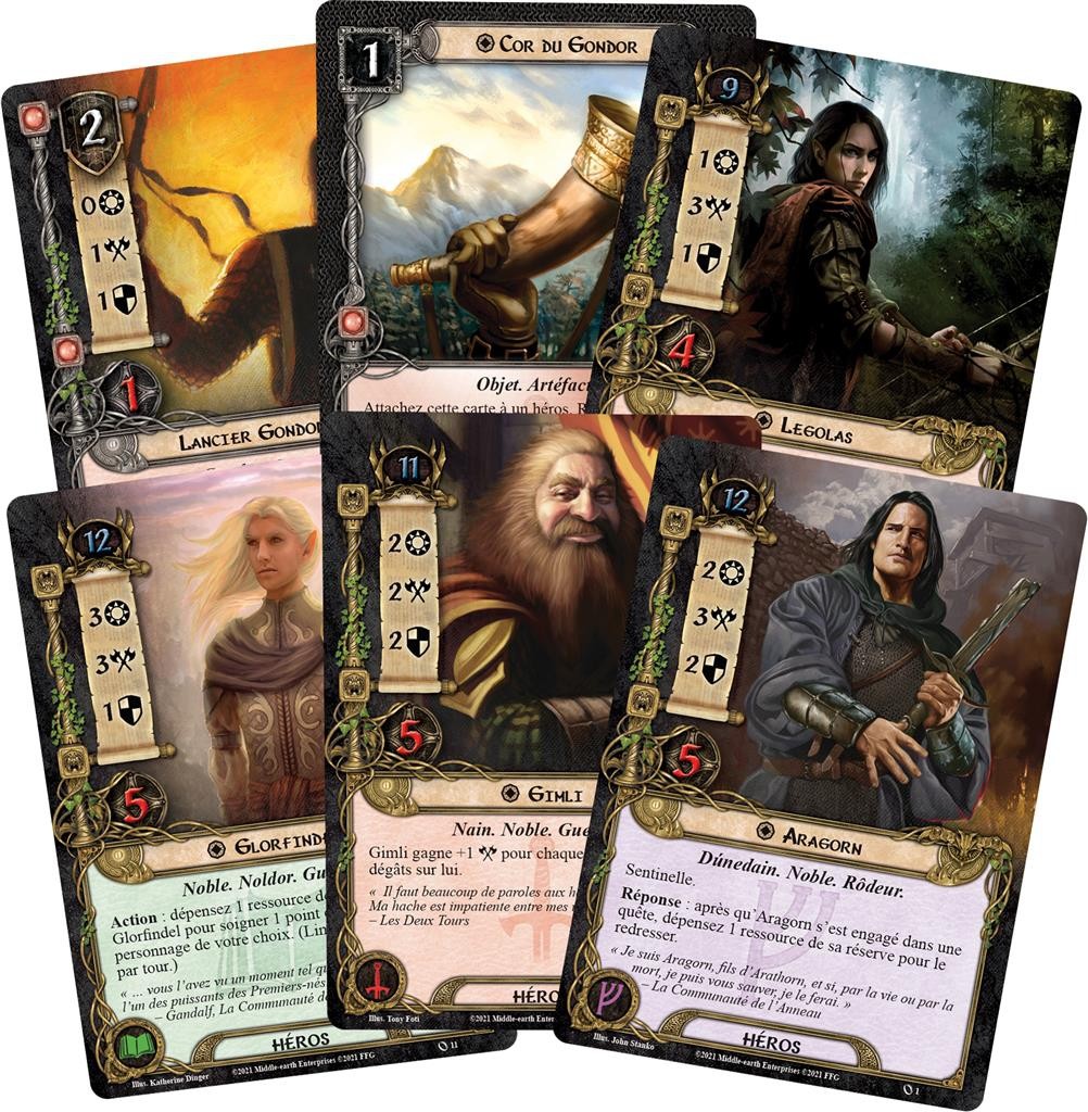 Dans Le Seigneur des Anneaux : Le Jeu de Cartes, les joueurs dirigent un groupe d’aventuriers essayant d’accomplir des quêtes périlleuses dans la Terre du Milieu. Des champs de la Comté aux chemins dangereux de la Forêt Noire, en passant par les royaumes du Gondor et du Rohan, les fameux héros de cet univers se rassemblent pour résister à la menace du Seigneur Ténébreux, Sauron.