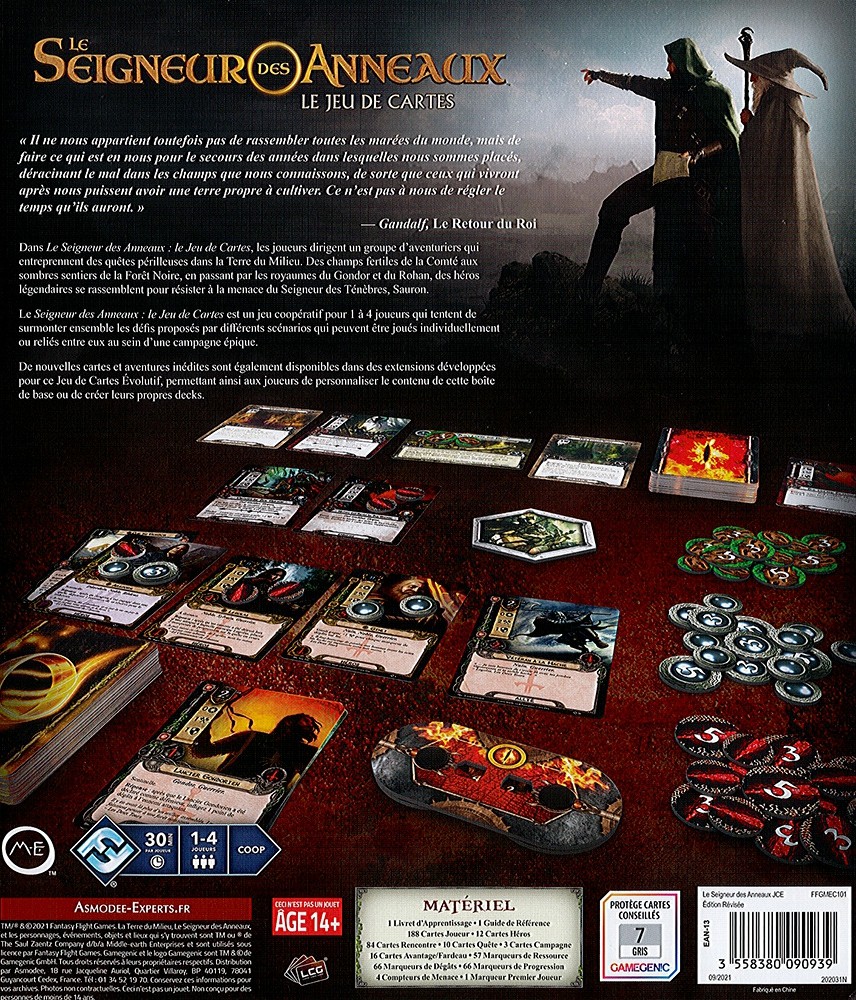 La boîte de base révisée du jeu de cartes évolutif du Seigneur des Anneaux contient du matériel amélioré, pour une expérience plus agréable de jeu, et idéal pour les personnes qui voudraient se lancer dans un périple mythique ! Tous les éléments sont disponibles pour partir jusqu’à 4 et former une communauté digne de ce nom. (Re)découvrez un des classiques du jeu de société, qui nous fait rêver depuis 10 ans maintenant !