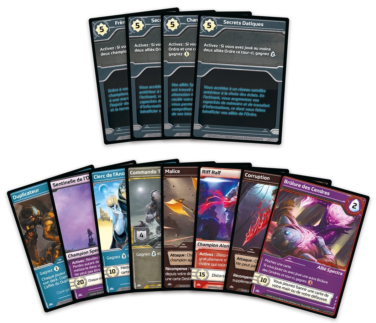 Dans cette extension du jeu de deckbuiling Shards of Infinity, de nouvelles cartes Destinées vont vous accorder de nouvelles capacités dès que vous obtiendrez 5 de maîtrises. Ces différentes cartes pourront orienter votre tactique et l’utilisation des cartes communes en vous offrant de nouveaux pouvoirs.